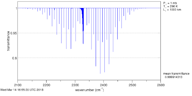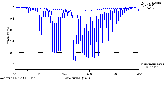 Some may recall that at the end of the first episode, the Spectroscopic Basis, Eli asked why the CO2 IR absorption spectrum at atmospheric pressure
