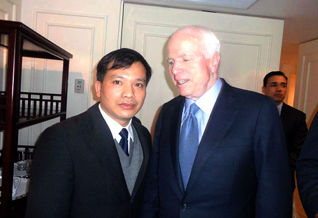 A 2015 Radio Free Asia article published in Vietnamese titled, "Nguyen Van Dai was arrested before the meeting with the EU representative" (when translated), features an image of Dai with US Senator John McCain in the US Embassy in Hanoi. The article also admits (translated):