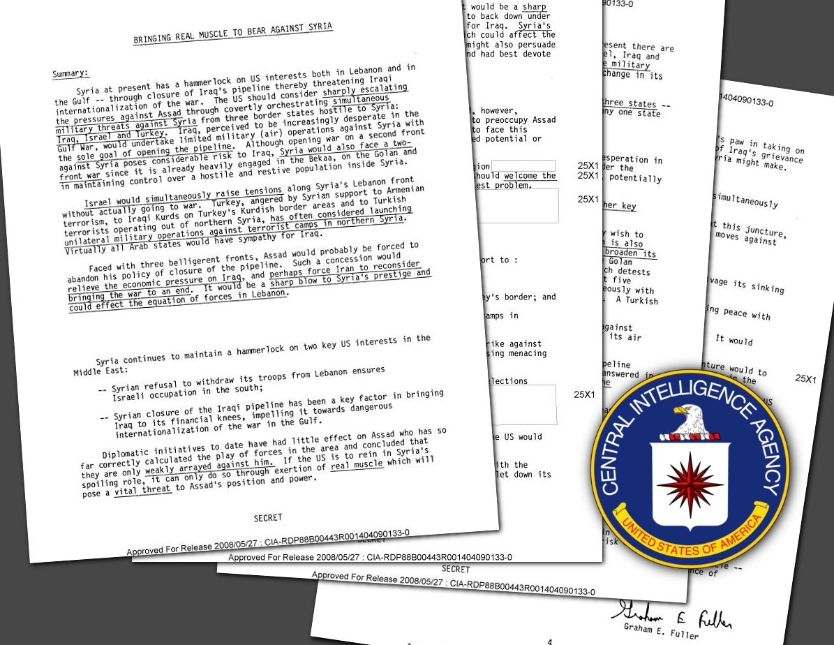 A 1983 document signed by former CIA officer Graham Fuller titled, "Bringing Real Muscle to Bear Against Syria" (PDF), states (their emphasis):