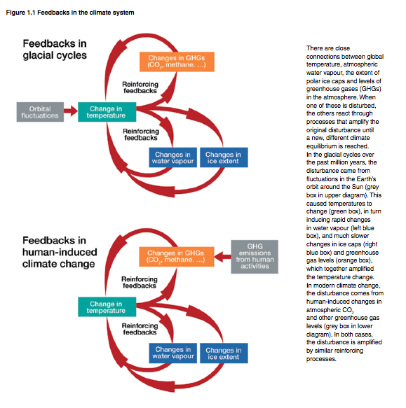 One of Eli's favorite figures comes from the Australian Academy of Sciences and neatly captures the way in which greenhouse gases can be both an initiator and a feedback to global climate