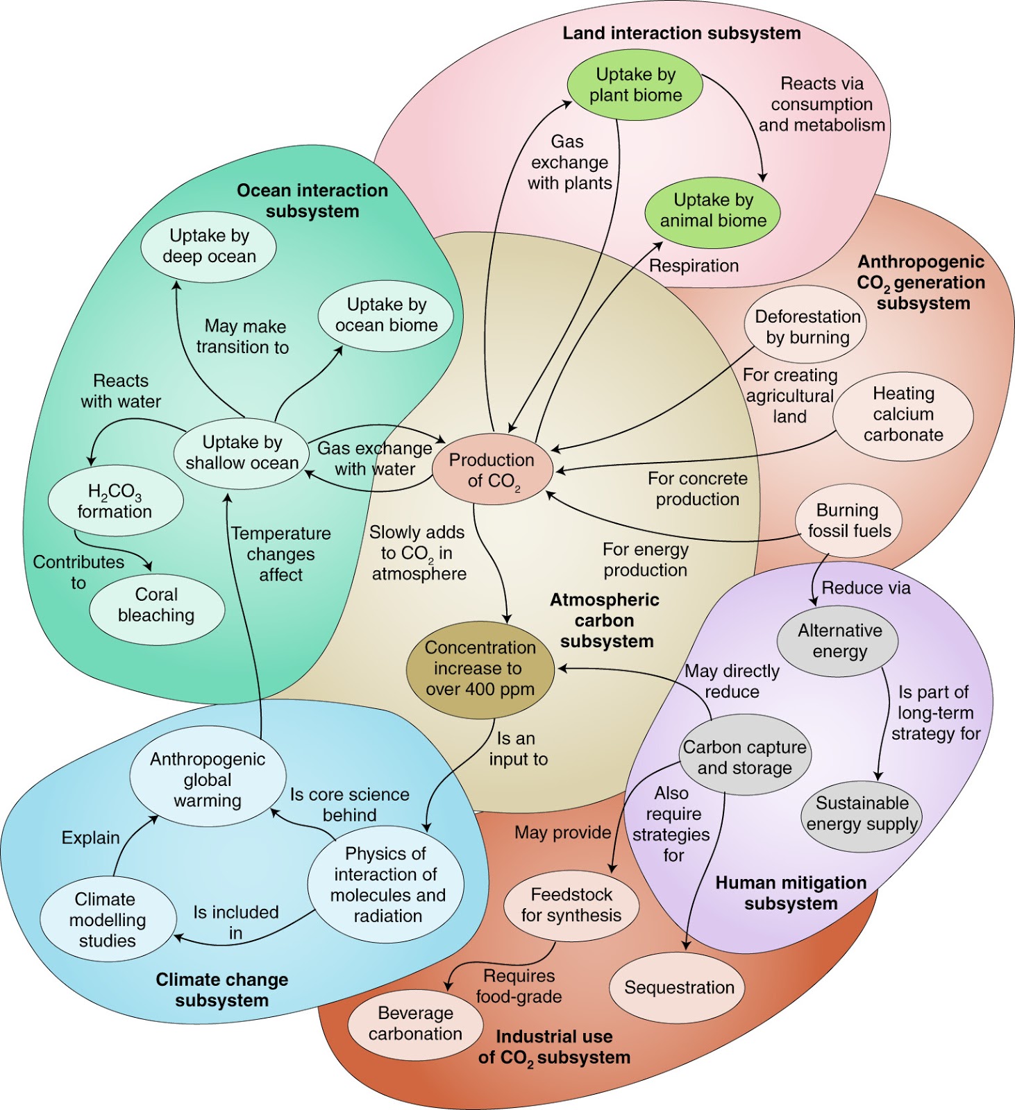 The primary activities of chemistry involve analysing, synthesizing and transforming matter, yet insufficient attention has been paid to the implications of those activities for human and environmental well-being. Since a core element of addressing sustain-ability challenges requires attention to the material basis of society, a new paradigm for the practice of chemistry is needed. Chemistry education, especially gateway post-secondary general chemistry courses, should be guided by an understanding of the molecular basis of sustainability. A Systems Thinking in Chemistry Education framework illustrates one way to integrate knowledge about the molecular world with the sustainability of Earth and societal systemsEli, a splitter to the bone, nonetheless sees great advantages of this approach, not only for climate change but for other issues which impact on the world in general. There are lots of great points and images in this paper. They have a great map that brings together the systems involved in the carbon cycle