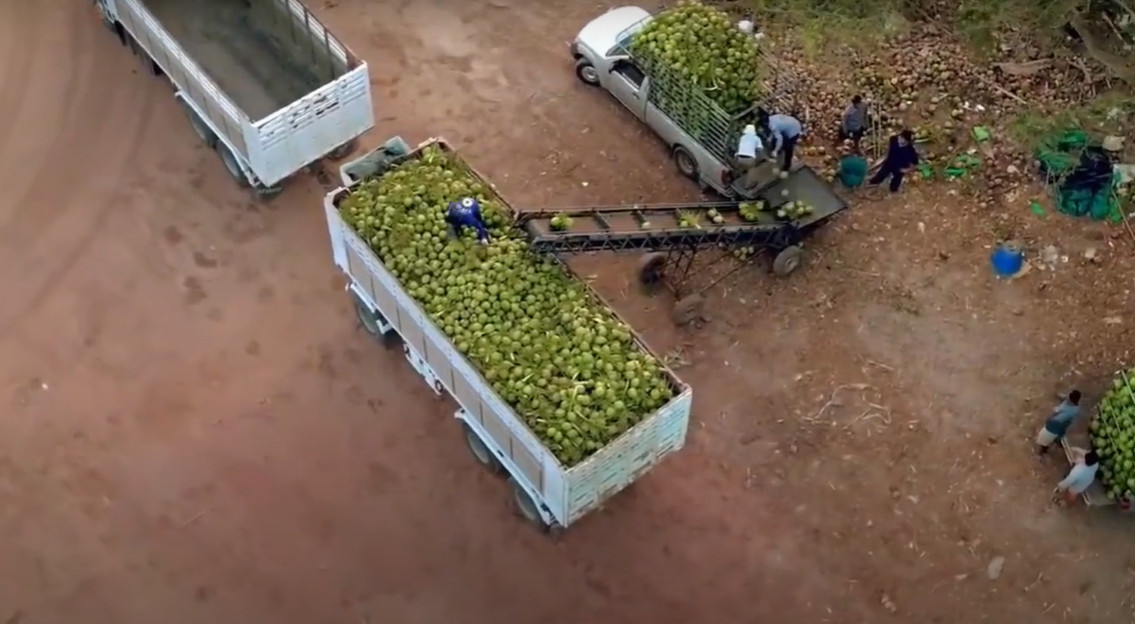 Industrial coconut farming is done by humans and as the video above shows, at a scale, pace, and in volumes no amount of monkey labor depicted by PETA could possibly compete with.