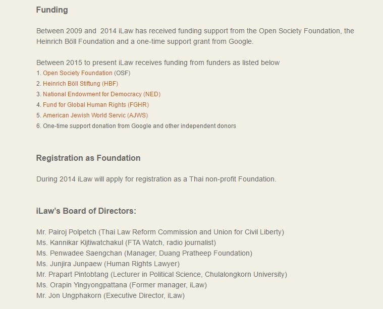 No where in The Nation's article is mentioned that iLaw's primary source of income is the US government via the National Endowment for Democracy (NED) - a notorious US government arm involved in political interference and regime change operations around the globe.