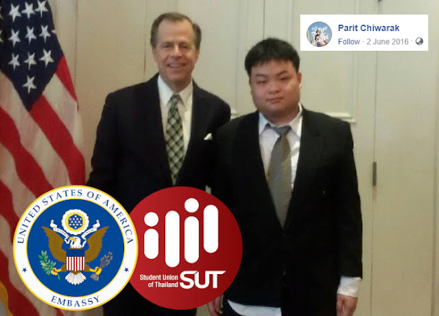 One of the founders of SUT - Parit "Penguin" Chiwarak - has visited the US Embassy at least twice and specifically to meet US Ambassador Glyn Davies - a US National War College graduate who studied, "non-military instruments in persuasive, inducement, and coercive strategies."