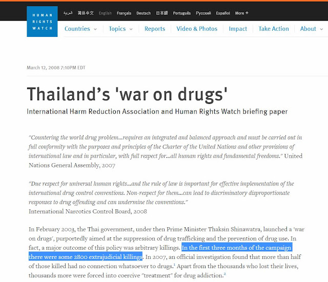 The Western media still writes entire articles about Thaksin Shinawatra and his role in Thai politics - including this piece from last year in the Washington Post - never once mentioning the thousands put to death under his regime.