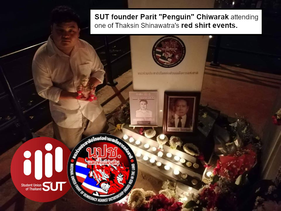 One SUT leader, Parit "Penguin" Chiwarak, is even seen attending one the "red shirt" rallies Thitinan claims the students have nothing to do with.