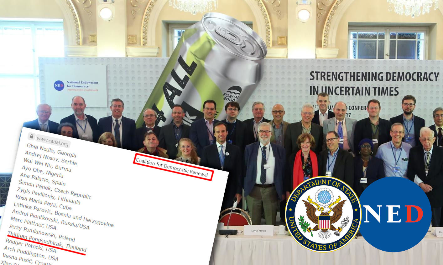 He is a co-signer with the US NED's president, Carl Gershman, as well as pro-war US Neo-Conservatives and NED directors like Francis Fukuyama, George Weigel, and the Washington Post's Anne Applebaum, as well as fellow Thai agitators who directly receive money from the US NED like Jon Ungphakorn and Nidhi Eoseewong. Other signatories are NED funded agitators like Malaysia's Anwar Ibrahim and Ambiga Sreenevasan, Hong Kong's Joshua Wong who regularly flies to Washington for support and directives and his compatriot Nathan Law who was caught seeking aid and directives in the US consulate in Hong Kong, Sam Rainsy whose Cambodian opposition party is literally run out of Washington D.C., and Russia's US-based critic - Garry Kasparov.