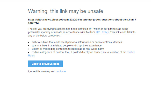 September 14, 2020September 15, 2020 (Tony Cartalucci - LD) - After exposing US funding behind Thailand's current anti-government protests and the US Embassy responding not once, but twice to growing awareness among the Thai public - Twitter moved to censor links to my Thai-centric blog, AltThaiNews.