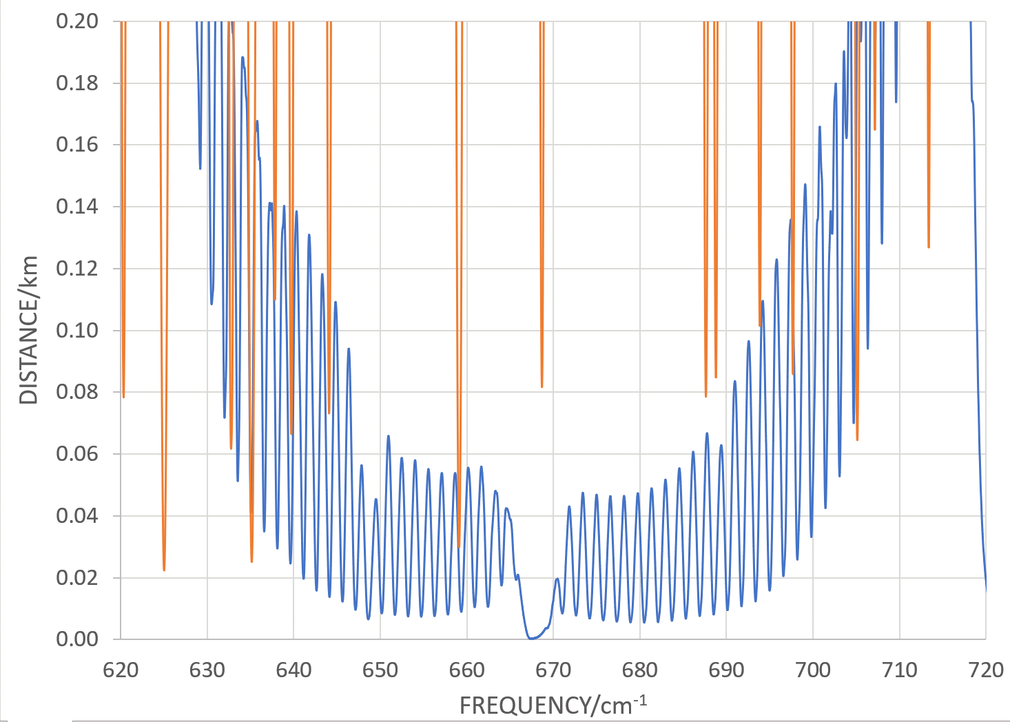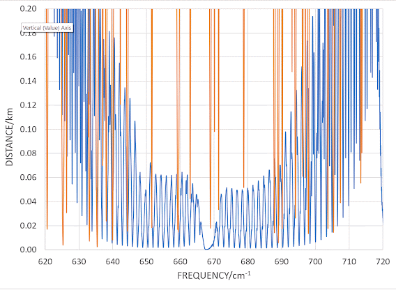 but it does look like very little gets more than 30 m or so. By averaging over 1 cm⁻¹ the picture becomes clearer