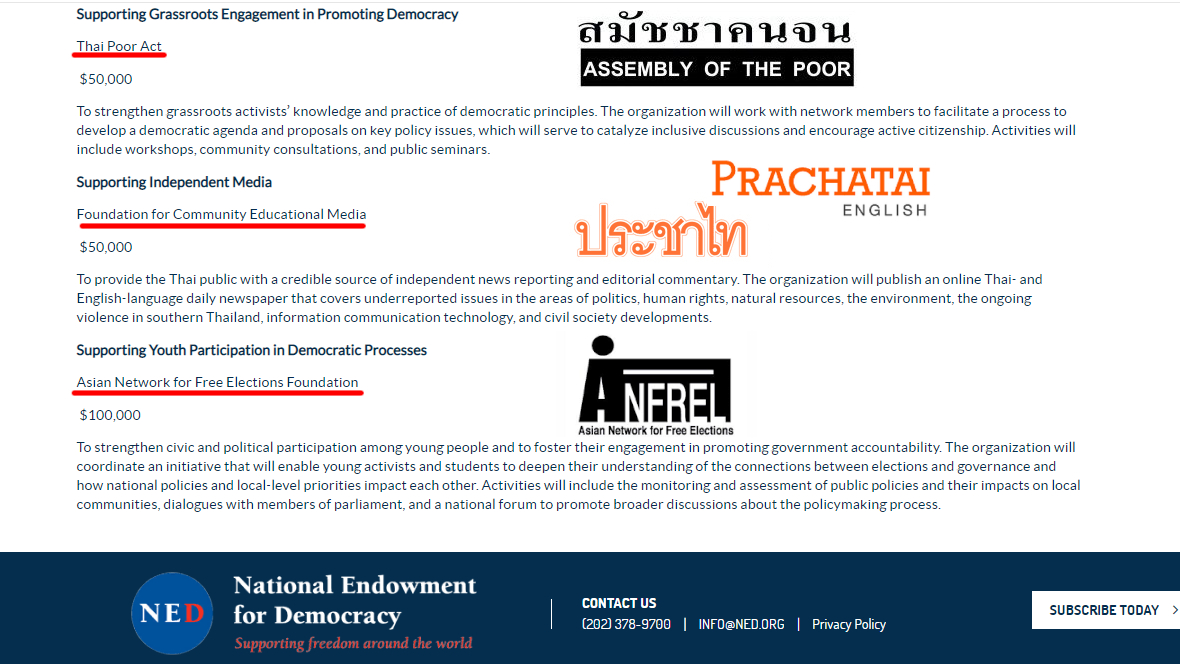 READ MORE: US Embassy Denies Funding Thai Protests Groups Listed on US NED's Own Website