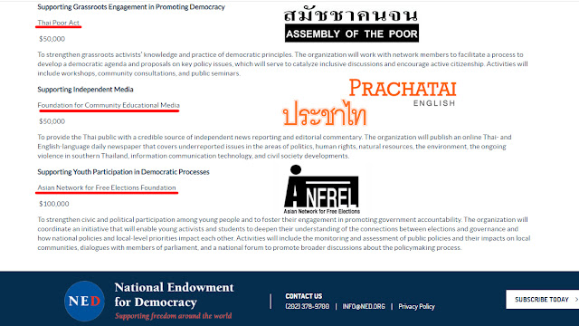 US government funding of core organizations behind ongoing anti-government unrest in Thailand is also openly listed on the US National Endowment for Democracy's (NED) official website - the link to which is now widely circulating online in Thailand.
