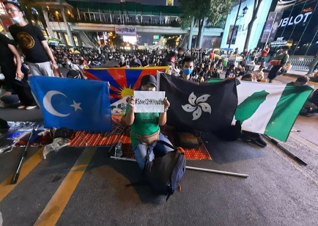 Thai protests now regularly feature chants declaring Hong Kong as "a country" and include protesters flying flags of the so-called "Milk Tea Alliance" including those of the Taiwanese independence movement, Tibetan rebels, Uyghur separatists, and the Hong Kong rioters.