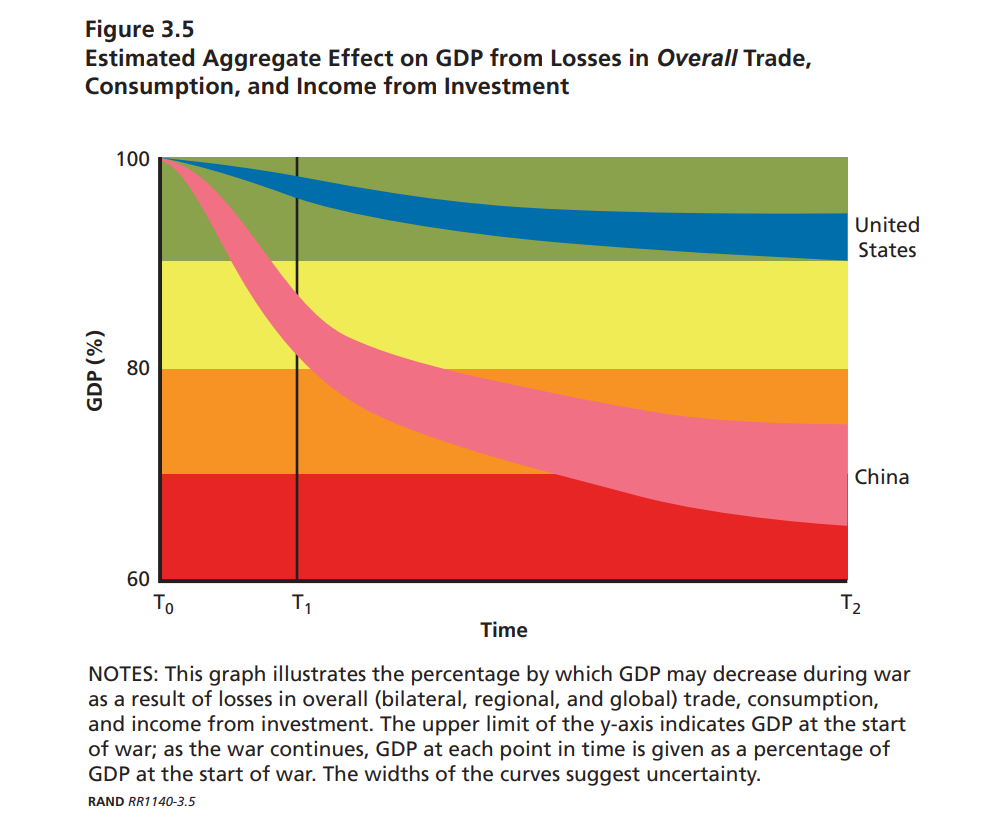 The RAND paper notes specifically the impact on Chinese trade a conventional conflict confined to East Asia would have. The report notes: